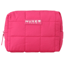 The stylish and eco-friendly toiletry bag is made from recycled materials, thus contributing to sustainability.
