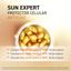 SUN EXPERT Anti-Aging Cell Protector is your indispensable ally to prepare and protect your skin from sun exposure, promising a triple benefit: