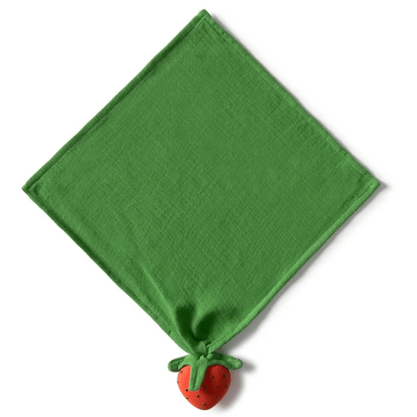 It's made from OEKO-TEX certified organic cotton , guaranteeing it's safe for sensitive skin and free from harmful substances. Its charming design, featuring organic cotton leaf details and a 100% natural rubber apple , not only looks cute and appealing but also doubles as a safe teether for babies to explore.