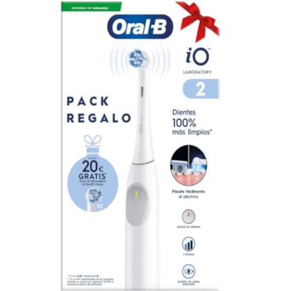 https://www.mifarma.eu/oral-b-io-2-laboratory-electric-toothbrush-white-2-refills666496473406Oral-B iO 2 Laboratory Electric Toothbrush White + 2 Refills<p><span style="font-weight: bold;">Oral-B iO 2 Laboratory Electric Toothbrush White + 2 Refills</span></p><p> The Oral-B iO 2 electric toothbrush represents the perfect fusion of <span style="font-weight: bold;">advanced technology and ergonomic design</span> , offering a brushing experience that simulates professional cleaning.</p><p> This device, which <span style="font-weight: bold;">combines gentle micro-vibrations with a unique round head</span> , has been inspired by dentists to provide a purifying sensation with every use.</p><p> With iO technology, this brush ensures that <span style="font-weight: bold;">your teeth are 100% cleaner than with a manual brush</span> , being <span style="font-weight: bold;">tough on plaque but gentle on the gums</span> , making it an ideal choice for those looking for effective and gentle oral care.</p><p> The iO 2 design makes the transition to electric toothbrushes easy with its simple one-button operation, quiet brushing sound, and long-lasting battery life.</p><p> Additionally, its automatic pressure sensor protects gums by reducing brushing speed and emitting a red signal if too much force is applied, thus preventing possible damage. Users can choose between three cleaning intensity levels: extra soft, soft, and daily cleaning, adapting their brushing experience to their personal preferences and dental needs.</p><p> The <span style="font-weight: bold;">2-minute timer, which alerts you every 30 seconds to change brushing zones</span> , helps you follow dentist recommendations, ensuring thorough and effective brushing.</p><p> With a <span style="font-weight: bold;">long-lasting battery that includes a low-charge indicator</span> , the iO 2 electric toothbrush is designed for comfort and functionality, making it an essential ally for maintaining optimal oral health.</p>https://assets.atida.com/transform/8f5714e9-b3fa-4fc7-ae42-970c397157c2/Oral-B-Cepillo-Electrico-iO-2-Laboratory-Blanco-2-Recambios?io=transform:extend,width:250,height:25054.99instock59.9545.44627999173684.96Oral-Bhttps://www.mifarma.eu/media/catalog/product/5/4/e/4/54e418ed324e3160cff346b802ea1e6933ddc58c_Oral_B_Cepillo_Electrico_iO_2_Laboratory_Blanco_2_Recambios.png/Health and Hygiene/Dental and Oral Care/Toothbrushes/Health and Hygiene/Health and Hygiene/Dental and Oral Care/Electric Brushes/Gifts/Gifts/Gifts for the Whole Family2025-10-24T00:05:00+0000