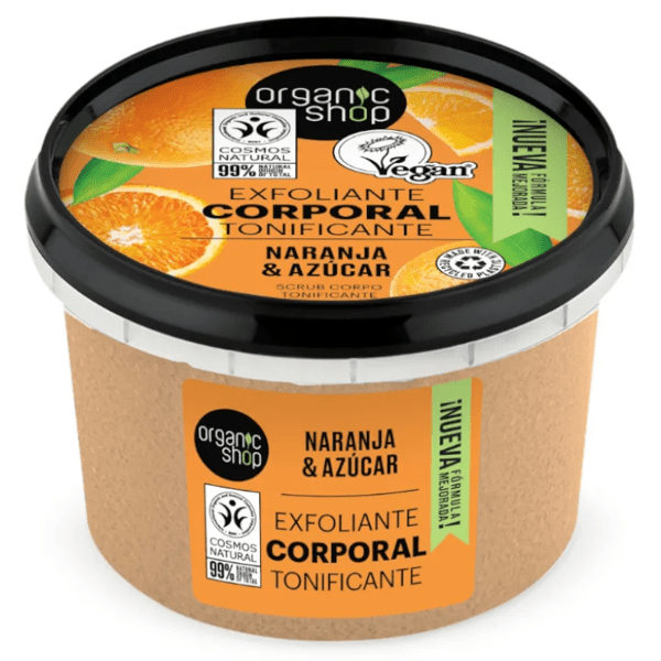 https://www.mifarma.eu/organic-shop-orange-toning-body-scrub-250-ml653332561429Organic Shop Orange Toning Body Scrub 250 ml<p><span>Body scrub</span> formulated with organic orange oil and natural sugar.</p><p> Instantly restores the softness and suppleness of your skin.</p><p> Suitable for <span>all skin types</span> .</p><p> Formulated with 99% ingredients of natural origin.</p><p> Suitable for <span>vegans</span> .</p>https://assets.atida.com/transform/d9e6f04c-0a3c-4fe2-98fe-a3dad9e545e5/Organic-Shop-Exfoliante-Corporal-Tonificante-Naranja-250-ml?io=transform:extend,width:250,height:2504.99instock4.994.123965942148800Organic Shophttps://www.mifarma.eu/media/catalog/product/a/a/d/9/aad96f7f13b6cc5e59232cee4a2677a5a0f7206a_Organic_Shop_Exfoliante_Corporal_Tonificante_Naranja_250_ml.png/Cosmetics and Beauty/Natural and Organic Cosmetics/Health and Hygiene/Health and Hygiene/Body Care/Health and Hygiene/Body Care/Moisturization and Exfoliation/Cosmetics and Beauty/Cosmetics and Beauty/Body2024-09-16T06:08:28+0000