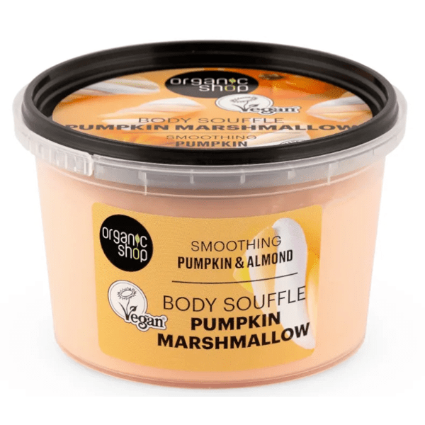 https://www.mifarma.eu/organic-shop-pumpkin-and-marshmallow-body-souffle-250-ml692144407598Organic Shop Pumpkin and Marshmallow Body Soufflé 250 ml<p><span style="font-weight: bold;">Organic Shop Pumpkin and Marshmallow Body Soufflé 250 ml</span></p><p> With the arrival of autumn, your skin cries out for special care and we offer it to you with our exclusive formula. Imagine wrapping your skin in a veil of <span style="font-weight: bold;">nutrition and softness</span> , where each application is a step towards radiant and youthful skin.</p><p> Our secret lies in the <span style="font-weight: bold;">combination of natural ingredients</span> , <span style="font-weight: bold;">with pumpkin and almond at the forefront</span> , capable of transforming your skin from the inside out.</p><p> Pumpkin, rich in antioxidants, penetrates deep into the skin, defending it from free radicals and stimulating collagen synthesis, an <span style="font-weight: bold;">essential component for elastic and firm skin</span> . On the other hand, almond, with its highly emollient properties, combats dryness and provides a feeling of renewal that will leave you amazed.</p><p> With each use, you will feel your skin transform, becoming smoother, healthier and visibly younger.</p><p> For a complete experience, we recommend applying our formula with light massages on the skin of the body, allowing each nutrient to be absorbed and act from within.</p><p> Get ready to reveal rejuvenated, soft and fully nourished skin, perfect for welcoming autumn.</p>https://assets.atida.com/transform/18f96348-7c91-427b-9566-a895921193e8/Organic-Shop-Sufle-Corporal-Calabaza-y-Malvavisco-250-ml?io=transform:extend,width:250,height:2504.99instock5.294.123965942148860.3Organic Shophttps://www.mifarma.eu/media/catalog/product/d/3/0/3/d303abe5a90198ecca1345096036901cd98dd67f_Organic_Shop_Sufle_Corporal_Calabaza_y_Malvavisco_250_ml.png/Cosmetics and Beauty/Cosmetics and Beauty/Body/Cosmetics and Beauty/Body/Moisturizers2024-12-20T00:42:38+0000