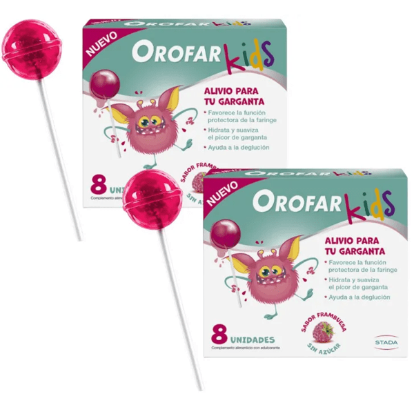 https://www.mifarma.eu/orofar-kids-soothing-throat-lollipops-3-years-raspberry-2x8-units 354677912732 OROFAR Kids Soothing Throat Lollipops +3 Years Raspberry 2x8 units <p><span style="font-weight: bold;">OROFAR Kids Soothing Throat Lollipops +3 Years Raspberry 2x8 units</span></p><p> <span style="font-weight: bold;">Effective throat relief</span> with <span style="font-weight: bold;">OROFAR Kids,</span> the <span style="font-weight: bold;">raspberry-flavored lollipops</span> that children love.</p><p> Each of these eight <span style="font-weight: bold;">sugar-free lollipops</span> helps soothe <span style="font-weight: bold;">itchy and sore throats.</span></p><p> Formulated with natural ingredients, including <span style="font-weight: bold;">Icelandic lichen</span> and <span style="font-weight: bold;">marshmallow</span> , known for their <span style="font-weight: bold;">softening and moisturizing properties</span> .</p><p> These lollipops not only <span style="font-weight: bold;">taste delicious</span> , but they also work quickly and effectively, creating a <span style="font-weight: bold;">protective film in the throat</span> to keep germs and irritants away.</p><p> Perfect for <span style="font-weight: bold;">relieving irritation</span> , <span style="font-weight: bold;">OROFAR Kids</span> becomes the <span style="font-weight: bold;">indispensable companion during the cold season</span> or in those moments of vocal discomfort.</p><p> Suitable for children <span style="font-weight: bold;">from 3 years</span> of age.</p> https://assets.atida.com/transform/752af25c-88fb-498b-93ac-64c3563f4516/OROFAR-Kids-Piruletas-Alivio-Garganta-3-Anos-Frambuesa-2x8-uds?io=transform:extend,width:250,height:250 13.99 outofstock 19.98 12.718180818182 30 5.99 OROFAR https://www.mifarma.eu/media/catalog/product/e/5/9/8/e598374ba3dd7ee9b693e8faa284e81b90ed570d_OROFAR_Kids_Piruletas_Alivio_Garganta_3_Anos_Frambuesa_2x8_uds.png /Baby and Mom /Savings Packs/Vitamins and Supplements Packs /Savings Packs /Baby and Mom/Children's health /Vitamins and Supplements /Vitamins and Supplements/Supplements /11% off Orofar Kids Bundle /Mini Prices 2026-03-20T01:00:25+0000