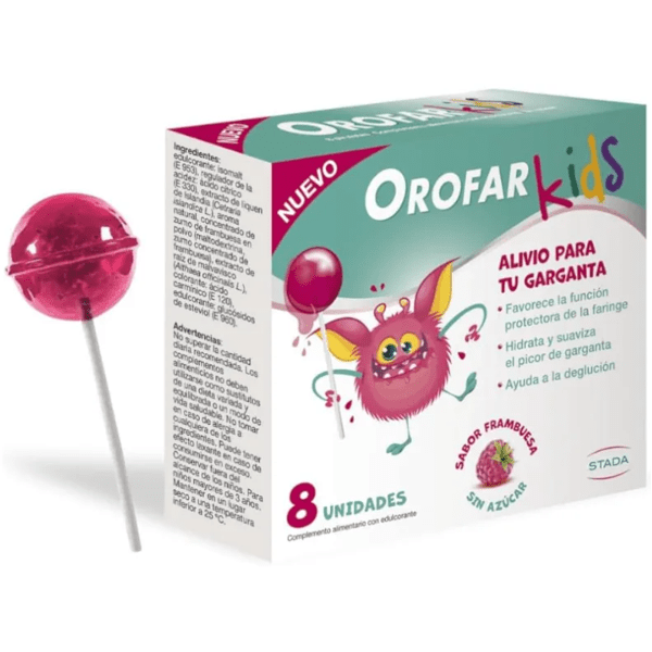https://www.mifarma.eu/orofar-kids-throat-relief-lollipops-3-years-raspberry-8-units112935360015OROFAR Kids Throat Relief Lollipops +3 Years Raspberry 8 units<p><span style="font-weight: bold;">OROFAR Kids Throat Relief Lollipops +3 Years Raspberry 8 units</span></p><p> <span style="font-weight: bold;">Juicy and effective throat relief with OROFAR Kids,</span> the raspberry-flavored lollipops that children love.</p><p> Each of these eight <span style="font-weight: bold;">sugar-free</span> treats is a brave shield <span style="font-weight: bold;">against itching and discomfort,</span> packed with natural ingredients, including <span style="font-weight: bold;">Icelandic lichen and marshmallow</span> , known for their <span style="font-weight: bold;">soothing and moisturizing properties</span> .</p><p> These lollipops not only offer a delicious taste, but they also act quickly and effectively, creating a <span style="font-weight: bold;">protective film in the throat</span> to keep germs and irritants away.</p><p> Perfect for <span style="font-weight: bold;">relieving irritation</span> , OROFAR Kids becomes the <span style="font-weight: bold;">indispensable companion during the cold season</span> or in those moments of vocal discomfort.</p><p> Its playful format encourages children to take their recommended daily dose, enjoying a relief experience that is as pleasant as it is effective.</p><p> Suitable for children <span style="font-weight: bold;">ages 3</span> and up, incorporate these natural treasures into your family's wellness regimen, offering comprehensive, worry-free care.</p>https://assets.atida.com/transform/cb21a8c1-200b-4a93-9ca8-3884698f05fa/OROFAR-Kids-Piruletas-Alivio-Garganta-3-Anos-Frambuesa-8-uds?io=transform:extend,width:250,height:2509.99outofstock9.998.256197347107400OROFARhttps://www.mifarma.eu/media/catalog/product/a/8/5/c/a85cb620d1575f4ca6d0391e860628bafc866358_OROFAR_Kids_Piruletas_Alivio_Garganta_3_Anos_Frambuesa_8_uds.png/Baby and Mom/Baby and Mom/Baby Vitamins/Vitamins and Supplements/Vitamins and Supplements/Supplements2025-06-02T23:42:09+0000