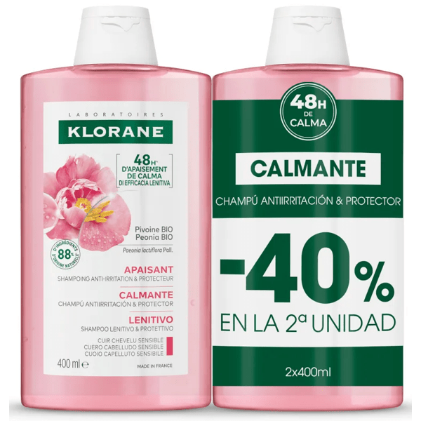 https://www.mifarma.eu/pack-duplo-klorane-chinese-peony-extract-shampoo-400ml957740376445Pack Duplo Klorane Chinese Peony Extract Shampoo 400ml<p><strong>Pack Duplo Klorane Chinese Peony Extract Shampoo 400ml</strong></p><p> KLORANE Peony Extract Soothing Shampoo, with a fluid texture and translucent pink color, provides all the freshness that irritated scalp requires.</p><p> Can be used as frequently as desired, this protective and soothing shampoo is a true care for irritated scalp that suffers from itching caused in particular by dandruff conditions.</p><p> This shampoo is indicated for frequent use.</p><p> <strong>Pack of two units with the 2nd unit at 50%.</strong></p>https://assets.atida.com/transform/1133ee6a-dd76-40ce-9f84-6826a2a0945e/Klorane-Champu-Extracto-de-Peonia-de-China-Bio-2x400-ml?io=transform:extend,width:250,height:25022.99instock3218.999999289.01Kloranehttps://www.mifarma.eu/media/catalog/product/d/a/9/7/da97fd273649b77a29250a110c3601444f08962c_Klorane_Champu_Extracto_de_Peonia_de_China_Bio_2x400_ml.png/Atida Cash 5%/Natural and Organic Cosmetics/Health and Hygiene/Hair Care/Hair Shampoo/Health and Hygiene/Health and Hygiene/Hair Care2024-09-16T06:25:41+0000