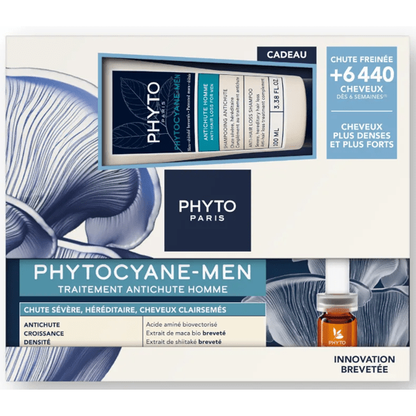 https://www.mifarma.eu/phyto-phytocyane-men-12-ampoules-shampoo-100-ml331290105120Phyto Phytocyane Men 12 Ampoules + Shampoo 100 ml<p><span>Phyto Phytocyane Men 12 Ampoules + Shampoo 100 ml</span></p><p> Natural concentrated treatment indicated to stop hair loss in men. With triple action effectiveness that stops hair loss, stimulates growth and provides shine and volume to the hair.</p><p> This treatment is designed to stop severe male hair loss linked to age or hereditary factors.</p><p> Formula with 95% ingredients of natural origin enriched with patented organic maca extract, with biovectorized amino acids and patented shitake extract.</p><p> Leave-in, non-greasy and non-sticky.</p><p> Includes a 100 ml shampoo.</p>https://assets.atida.com/transform/5abf9c0b-01cc-44ab-94de-f3d5fc97130a/Phyto-Phytocyane-Hombre-12-Ampollas-Champu-100-ml?io=transform:extend,width:250,height:25038.99instock57.8932.2231394958683318.9Phytohttps://www.mifarma.eu/media/catalog/product/9/8/c/3/98c3973df05b1a9efd4e5c635a37f6da93a9ad8a_Phyto_Phytocyane_Hombre_12_Ampollas_Champu_100_ml.png/Gifts/Health and Hygiene/Hair Care/Anti-Hair Loss/Health and Hygiene/Health and Hygiene/Hair Care/Gifts/For Him/cyber_monday_pt_int/Mifarma Days NO/Singles' Day: Up to 70% off!/15% off Phyto2024-09-16T05:52:00+0000
