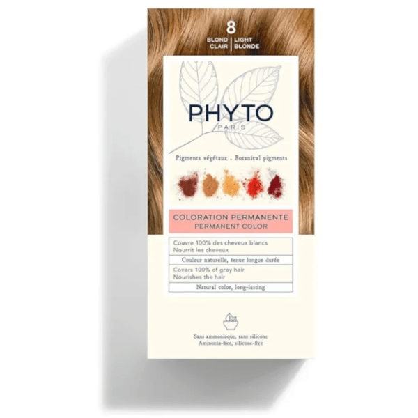 https://www.mifarma.eu/phytocolor-8-light-blonde-tint401346712129Phytocolor 8 Light Blonde Tint<p><b>Long-lasting, permanent coloring hair dye</b> in shade 8 Light Blonde.</p><p> Covers 100% of gray hair from the first application, and leaves an intense and natural color that does not fade with washes.</p><p> Contains 74% pigments of vegetable origin, including jojoba and monoi oil.</p><p> This dye is not aggressive to the scalp or hair, but protects the hair and leaves it shiny and nourished.</p><p> <b>Does not contain ammonia</b> .</p><p> <b>It should not be used by people under the age of 16</b> .</p><p> This kit contains:</p><p> - 1 container of 50ml revealing milk.</p><p> - 1 tube of 50ml coloring cream.</p><p> - 1 12ml color protective mask.</p><p> - 1 pair of gloves.</p><p> - Prospectus.</p><p> Dermatologically tested product.</p>https://assets.atida.com/transform/e01ba322-5632-4d2f-9d84-f9f36810898f/Phyto-Phytocolor-Tinte-8-Rubio-Claro?io=transform:extend,width:250,height:2509.99instock15.688.2561973471074365.69Phytohttps://www.mifarma.eu/media/catalog/product/b/7/9/1/b7914f8ec60b944a7ff95fd47fcdf5a0795202ac_Phyto_Phytocolor_Tinte_8_Rubio_Claro.png/Health and Hygiene/Hair Care/Coloring/Health and Hygiene/Health and Hygiene/Hair Care/cyber_monday_pt_int/Mifarma Days NO/Mifarma Days: Up to 70% off!/NO MIFARMA DAYS2024-09-16T05:55:31+0000