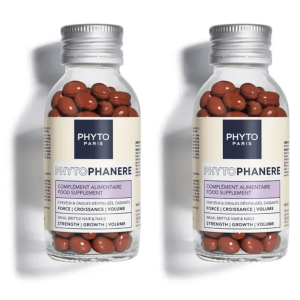Phytophanere slows hair loss and strengthens nails, preventing breakage and improving their appearance. Pack of two bottles of 120 capsules each.