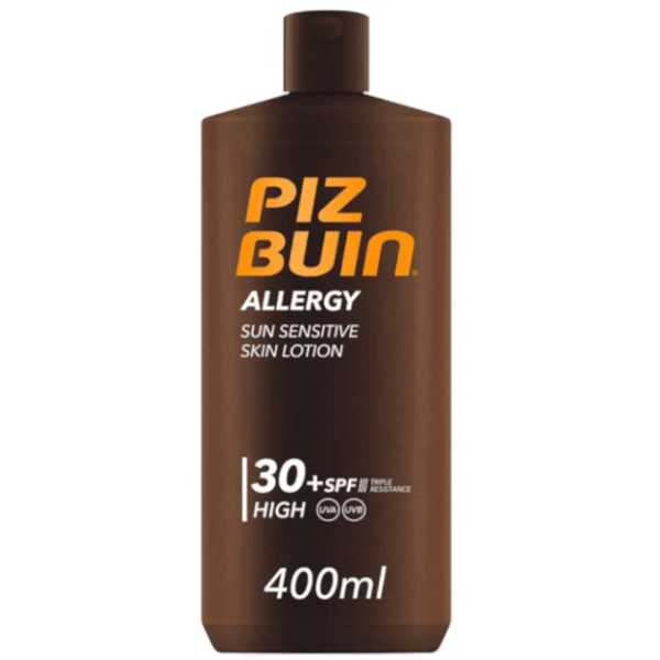 https://www.mifarma.eu/piz-buin-allergy-lotion-400ml-30spf 711645559270 Piz Buin Allergy lotion 400ml 30SPF <p><b>Piz Buin Allergy lotion 400ml 30SPF</b></p><p> Specially developed for <a href= https://www.mifarma.co.uk/cosmetica-y-belleza/sol/protectores-solares >Sun-sensitive skin</a> , lotion absorbs quickly and provides hours of hydration. Soothes sensitive skin to the Sun and helps prevent flaking.</p><p> <b>how to use</b></p><p> Apply generously and even before sun exposure.</p><p> Reapply frequently, especially after sweating, swimming or wiping with a towel.</p><p> Avoid the midday sun and not remain a long time in the Sun, even when using sunscreen.</p><p> Keep infants and children from the direct light of the Sun.</p><p> water resistant</p> https://assets.atida.com/transform/e6c5ee1c-e94b-45eb-9acc-f123762a66ae/Piz-Buin-Allergy-Crema-Solar-Corporal-SPF30-Piel-Sensible-400-ml?io=transform:extend,width:250,height:250 16.99 instock 34.39 14.04132131405 51 17.4 Piz Buin https://www.mifarma.eu/media/catalog/product/d/1/0/6/d1062f2edbc3bd4f5295a726ba35139e8f245fe5_Piz_Buin_Allergy_Crema_Solar_Corporal_SPF30_Piel_Sensible_400_ml.png /Mini Prices /Health and Hygiene /Health and Hygiene/Sun Protection and Cream /Health and Hygiene/Sun Protection and Cream/Body Sun Protection /Up to 70% off /NO MIFARMA DAYS /Mifarma Days: Up to 70% off! /Mifarma Days! Up to 70% off /Mifarma Days NO 2024-09-16T06:12:12+0000