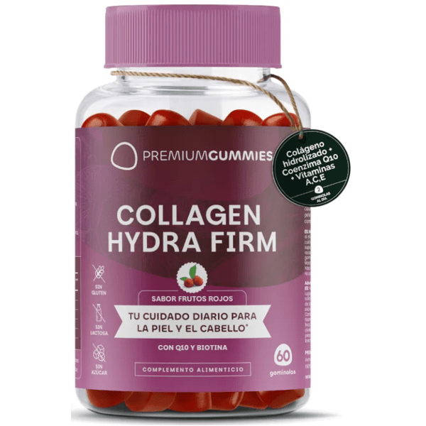 https://www.mifarma.eu/premium-gummies-collagen-60-gummies156147506778Premium Gummies Collagen Hydra Firm 60 units<p><span style="font-size: 13px; font-weight: 700;">Premium Gummies Collagen Hydra Firm 60 units</span></p><p> Discover the secret to <span style="font-weight: bold;">revitalizing your beauty from within</span> with this exclusive food supplement.</p><p> Formulated with a powerful combination of <span style="font-weight: bold;">Collagen, Vitamin C, Coenzyme Q10, Vitamins E and A, and Biotin,</span> this product is your perfect ally to <span style="font-weight: bold;">combat the signs of aging, preserving the firmness and elasticity of your skin.</span></p><p> In addition to keeping your <span style="font-weight: bold;">hair and nails strong and healthy</span> , each gummy immerses you in a sea of essential nutrients to boost your overall well-being, without compromising your diet since they are <span style="font-weight: bold;">free of gelatin, sugars, lactose, gluten and preservatives,</span> making them the perfect complement to any lifestyle.</p><p> Forget the complications and enjoy all these benefits in a delicious gummy, with <span style="font-weight: bold;">only 9.75 calories</span> .</p>https://assets.atida.com/transform/88edb698-3142-4791-afe7-aa3cec5f3669/Premium-Gummies-Collagen-Hydra-Firm-60-uds?io=transform:extend,width:250,height:25013.95instock13.9512.68181718181800Premium Gummieshttps://www.mifarma.eu/media/catalog/product/e/7/c/9/e7c96000498fd46bf9654738cf23619879af8797_Premium_Gummies_Collagen_Hydra_Firm_60_uds.png/Cosmetics and Beauty/Cosmetics and Beauty/Skin Care/Vitamins and Supplements/Vitamins and Supplements/Minerals/Vitamins and Supplements/Supplements/Vitamins and Supplements/Vitamins (A-K)/Mifarma Days NO2024-12-04T01:43:06+0000