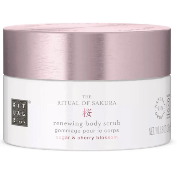 https://www.mifarma.eu/rituals-sakura-body-scrub-250-gr650063817617Rituals Sakura Body Scrub 250 gr<p><span style="font-weight: bold;">Rituals Sakura Body Scrub 250 gr</span></p><p> This body scrub transforms your skincare routine into a true beauty ritual.</p><p> <span style="font-weight: bold;">BENEFITS</span></p><p> - Its formula, which combines a mixture of sugar with oils, allows for gentle and effective exfoliation, removing impurities and dead skin cells.</p><p> - This not only leaves the skin visibly smoother, but also promotes cell renewal, improving skin texture and tone.</p><p> - Key ingredients, such as rice bran, tsubaki, and jojoba oil, are designed to deeply nourish the skin.</p><p> Rice bran is known for its antioxidant properties and its ability to improve hydration, while jojoba oil is famous for its similarity to the skin's natural oils, which facilitates its absorption and provides long-lasting hydration.</p><p> - Tsubaki, or camellia oil, is valued in cosmetics for its richness in fatty acids and vitamins, contributing to a brighter and healthier skin.</p><p> - It also offers a unique sensory experience thanks to its delicate fragrance, which combines the comforting aroma of rice milk with the elegant fragrance of cherry blossom.</p><p> - 91% of ingredients of natural origin.</p><p> - Suitable for vegans.</p>https://assets.atida.com/transform/57fcc8fc-e623-4742-9e65-9abeda7fc00c/Rituals-Sakura-Exfoliante-Corporal-250-gr?io=transform:extend,width:250,height:25015.99instock16.913.21487503305850.91Ritualshttps://www.mifarma.eu/media/catalog/product/e/5/e/a/e5ea517d7f1903d898dd0e103d2841a28068e676_Rituals_Sakura_Exfoliante_Corporal_250_gr.png/Cosmetics and Beauty/Cosmetics and Beauty/Body/Health and Hygiene/Health and Hygiene/Body Care/Health and Hygiene/Body Care/Moisturization and Exfoliation2026-01-01T01:02:39+0000
