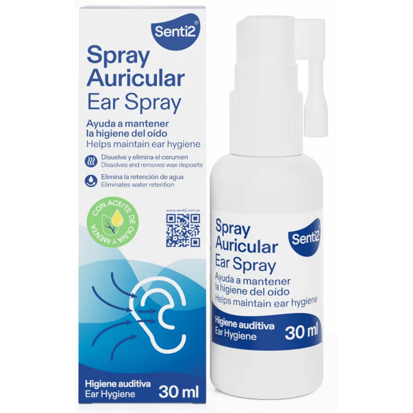 https://www.mifarma.eu/senti2-ear-spray-30-ml824382354826Senti2 Ear Spray 30 ml<p><span style="font-weight: bold;">Senti2 Ear Spray</span> is a product designed for <span style="font-weight: bold;">daily hygiene and the prevention of discomfort in the ear canal</span> . Its main function is to facilitate the <span style="font-weight: bold;">removal of excess earwax and prevent the formation of earwax plugs.</span></p><p> Generally formulated with an <span style="font-weight: bold;">isotonic solution of seawater or ingredients that gently soften earwax.</span></p><p> It helps <span style="font-weight: bold;">clean the ear canal of impurities, dust and grease residue,</span> keeping hearing clear.</p><p> <span style="font-weight: bold;">Benefits</span> :</p><p> <span style="font-weight: bold;">- Prevention:</span> Prevents earwax from becoming compacted, reducing the risk of temporary hearing loss or tinnitus.</p><p> <span style="font-weight: bold;">- Alternative to cotton swabs:</span> It is much safer than cotton swabs, which tend to push the wax further in instead of removing it.</p><p> <span style="font-weight: bold;">- Family use:</span> It is usually suitable for adults and children (it is recommended to check the leaflet for the minimum age, generally from 3 years old).</p>https://assets.atida.com/transform/8a162c46-5334-4c23-b5ee-1301c08b6460/Senti2-Spray-Oidos-30-ml?io=transform:extend,width:250,height:2505.99instock6.54.950412223140580.51Senti2https://www.mifarma.eu/media/catalog/product/c/a/6/3/ca632a78e167ba88b67a7b26060680980176f914_Senti2_Spray_Oidos_30_ml.png/Unclassified - Atida Category2026-03-20T01:28:08+0000