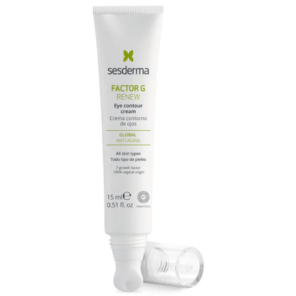 https://www.mifarma.eu/sesderma-factor-g-renew-contour-eyes-15ml703492075871Sesderma Factor G Renew contour eyes 15ml<p><b>Sesderma Factor G Renew contour eyes 15ml</b></p><p> Sesderma has formulated this eye contour-based factors of growth (TGF2, HGH, GM-CSF, TIMP-2 and EGF), campanediol, pinanediol, retinal and vitamin K oxide.</p><p> Its composition of antioxidants reduces free radical damage, it corrects the destruction of collagen and elastin in the skin.</p><p> In addition, the gotu Kola and their stem cells soothe, repair and regenerate the skin, giving a more youthful look.</p><p> It is ideal for all skin types, including sensitive and reactive, since it does not irritate or increase sensitivity to the Sun.</p><p> As main functions emphasize that it reduces wrinkles, bags and dark circles, and reaffirms the eye contour and the eyelids.</p><p> <b>How to use Sesderma Factor G Renew contour eyes 15 ml</b></p><p> After applying the serum, extend a small amount in the morning and in the evening, making soft Pat on the eye contour area until completely absorbed.</p>https://assets.atida.com/transform/26872799-c486-410b-976d-a520e1e080d0/Sesderma-Factor-G-Renew-Contorno-de-Ojos-15-ml?io=transform:extend,width:250,height:25022.99instock34.6818.9999993411.69Sesdermahttps://www.mifarma.eu/media/catalog/product/1/5/2/3/15238b9ed7a6d20775aa5d32c71330fa38300e9a_Sesderma_Factor_G_Renew_Contorno_de_Ojos_15_ml.png/Cosmetics and Beauty/Cosmetics and Beauty/Eyes/Cosmetics and Beauty/Eyes/Eye Contour/cyber_monday_pt_int/NO MIFARMA DAYS/Up to 70% off/Mifarma Days NO/Singles' Day: Up to 70% off!/Atida Cash 5%/20% off on Sesderma2024-09-16T06:11:42+0000