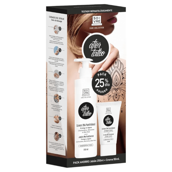 https://www.mifarma.eu/soivre-after-tattoo-gel-250-ml-cream-50-ml790805259998Soivre After Tattoo Gel 250 ml + Cream 50 ml<p><span style="font-weight: bold;">Soivre After Tattoo Gel 250 ml + Cream 50 ml</span></p><p> The cream, formulated with 5% panthenol, acts as a protective shield for the skin, isolating it from external agents that can cause irritation and, consequently, preventing possible infections.</p><p> This ingredient is known for its moisturizing and repairing properties, making it an excellent choice for keeping skin in optimal condition.</p><p> In addition, the soap incorporates chlorhexidine, a compound widely used in personal hygiene products for its refreshing and soothing properties.</p><p> Chlorhexidine not only helps cleanse, but also provides an antiseptic effect, which is beneficial in the context of aesthetic treatments.</p>https://assets.atida.com/transform/b1e3271e-6a00-4d02-9ef5-baab16a19b16/Soivre-After-Tattoo-Gel-250-ml-Crema-50-ml?io=transform:extend,width:250,height:2508.99instock11.47.4297510661157212.41SoiVrehttps://www.mifarma.eu/media/catalog/product/5/6/3/b/563b6b84b7e81d98c4cf7d73cccd4951406ee345_Soivre_After_Tattoo_Gel_250_ml_Crema_50_ml.png/Health and Hygiene/Health and Hygiene/Body Care/Health and Hygiene/Body Care/Moisturization and Exfoliation/Health and Hygiene/Body Care/Shower and Bath Gel/Last Opportunities2025-10-03T00:14:21+0000