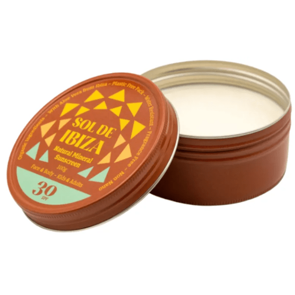 https://www.mifarma.eu/sol-de-ibiza-organic-sunscreen-spf-30-100g398628951219Sol de Ibiza Organic Sunscreen SPF 30 100g<p><span style="font-weight: bold;">Sol de Ibiza Organic Sunscreen SPF 30 100g</span></p><p> SPF 30 sunscreen for face and body, with a <span style="font-weight: bold;">zero-waste</span> aluminum container.</p><p> <span style="font-weight: bold;">BENEFITS</span></p><p> - Suitable for all family members, from newborn babies to adults.</p><p> - Formulated exclusively with natural ingredients and minerals, <span style="font-weight: bold;">without nanoparticles</span> .</p><p> - Thanks to zinc oxide, it provides a broad spectrum barrier against UVA and UVB rays.</p><p> - Water resistant.</p><p> - No chemical filters, heavy metals, titanium dioxide, perfumes or parabens.</p><p></p><p> - Suitable for vegans.</p><p> - Its formula preserves the integrity of oceans and aquatic ecosystems, preventing the introduction of harmful ingredients into marine environments.</p><p> - In addition, its <span style="font-weight: bold;">zero-waste</span> aluminum packaging underlines its commitment to the environment, offering a sustainable and reusable alternative.</p>https://assets.atida.com/transform/4ab07f44-1607-4403-bbdb-dda626e32644/Sol-de-Ibiza-Crema-Solar-SPF30-Bio-100-gr?io=transform:extend,width:250,height:25021.99instock2618.173552719008154.01Sol de Ibizahttps://www.mifarma.eu/media/catalog/product/1/9/e/1/19e1caad641dfee1dcf834b2be9ae431d3ce9ba6_Sol_de_Ibiza_Crema_Solar_SPF30_Bio_100_gr.png/Health and Hygiene/Health and Hygiene/Sun Protection and Cream/Health and Hygiene/Sun Protection and Cream/Body Sun Protection/Health and Hygiene/Sun Protection and Cream/Facial Sun Protection/Mifarma Days NO/Last Opportunities2025-03-28T00:41:34+0000