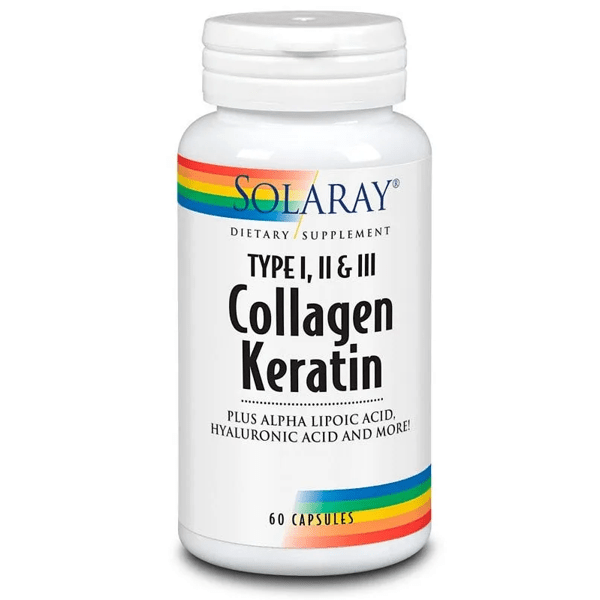 https://www.mifarma.eu/solaray-collagen-and-keratin-60-capsules192477240926Solaray Collagen and Keratin 60 Capsules<p><b>Food supplement</b> that combines three types of collagen with keratin and hyaluronic acid.</p><p> Helps maintain skin and hair in optimal condition.</p><p> SOLARAY® provides the highest amount of active substances.</p><p> All its products have been designed to dissolve in the body in a maximum time of 30 minutes.</p><p> Their product labels provide clear guidance for those on a more restrictive diet.</p><p> The products "Vegetarian / Vegan Friendly ™", phrase clearly indicated on the front of the label, and "Formulated without ...", phrase indicated on the side of the label, offer guidance on the characteristics of the formulation.</p>https://assets.atida.com/transform/b8707ae7-b48c-41ec-a651-c0cb1a3197ea/Solaray-Colageno-y-Queratina-60-Capsulas?io=transform:extend,width:250,height:25037.99outofstock55.1434.5363626363643117.15Solarayhttps://www.mifarma.eu/media/catalog/product/0/7/4/8/0748a77d8a8baa4d31759bee0e779d5abd9af497_Solaray_Colageno_y_Queratina_60_Capsulas.png/Vitamins and Supplements/Vitamins and Supplements/Supplements2024-09-16T05:45:24+0000