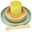 - A plate, a bowl, a glass and a spoon, all made of soft silicone.