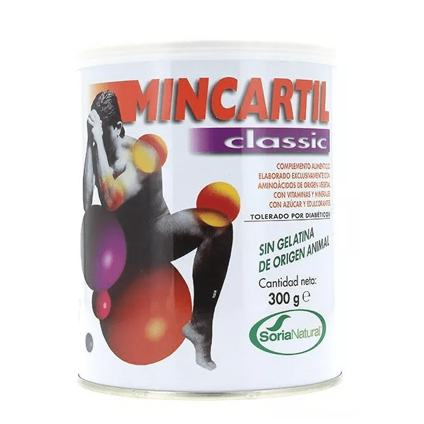 https://www.mifarma.eu/soria-natural-mincartil-classic-300g500807497918Soria Natural Mincartil Classic 300g<p><b>Soria Natural Mincartil Classic 300g</b></p><p> Mincartil Classic is a source of amino acids of vegetable origin that favors the conservation of the collagen, which is a fundamental component of the cartilage of the joints.</p><p> It is specially thought for children in times of growth, athletes, people with a poor maintenance of cartilage, pregnancy and lactation, preventing the appearance of osteoporosis, and people with brittleness of hair and nails,</p><p> <b>How to use Soria Natural Mincartil Classic</b></p><p> Adults: Dissolve 1 tbsp (g) of Mincartil Classic in a glass of water, fruit juice or yogurt. A measurement is recommended per day, preferably at breakfast.</p><p> Children: Take a spoonful of coffee once a day dissolved in water, fruit juice or yogurt, preferably at breakfast.</p>https://assets.atida.com/transform/9f1af32f-9444-4b59-a776-7d068b7a032c/Soria-Natural-Mincartil-Classic-300Gr?io=transform:extend,width:250,height:25019.99instock32.6818.1727262727273912.69Soria Naturalhttps://www.mifarma.eu/media/catalog/product/5/d/e/1/5de1509809dbb044aabf23f988c722fbf9d008bb_Product_Tile_Thumbnail_Soria_Natural_Mincartil_Classic_300Gr.png/Vitamins and Supplements/Supplements/Bones, Joints, and Muscles/Vitamins and Supplements/Supplements/Up to 70% off/Vitamins and Supplements/Mifarma Days NO/Special price Soria Natural2024-09-16T06:00:04+0000