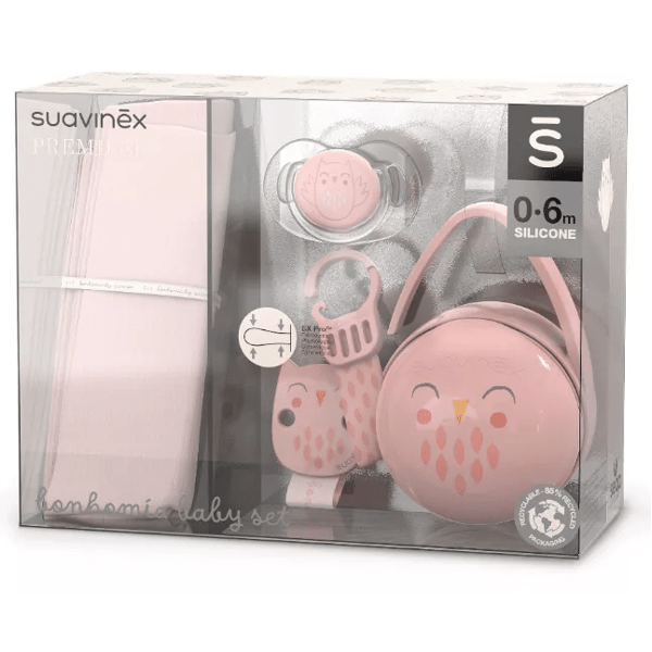 https://www.mifarma.eu/suavinex-bonhomia-pink-newborn-gift-set567111511218Suavinex Bonhomia Newborn Gift Set Pink<p><span style="font-weight: bold;">Suavinex</span> <span style="font-weight: 700;">Bonhomia</span> <span style="font-weight: 700;"> </span> <span style="font-weight: bold;">Pink Newborn Gift Set</span></p><p> Suavinex Bonhomia Newborn Gift Set is a complete and coordinated pack for newborn babies from <span style="font-weight: bold;">0 to 6 months</span> .</p><p> <span style="font-weight: bold;">Includes: a pacifier with an SX Pro physiological silicone teat, a pacifier clip to prevent the pacifier from falling to the floor, a duo pacifier holder to store two pacifiers at once, and a soft cotton muslin.</span></p><p> This set is part of Suavinex's Premium collection, designed to ensure baby's comfort and safety with high-quality products and a coordinated design.</p><p> Ideal as a gift for parents looking for practical and functional products for their baby's daily care.</p>https://assets.atida.com/transform/181d70d8-ea21-47e7-b39e-4805f6d833d4/Suavinex-Set-Regalo-Recien-Nacido-Bonhomia-Rosa?io=transform:extend,width:250,height:25021.99instock26.2118.173552719008164.22Suavinexhttps://www.mifarma.eu/media/catalog/product/7/a/7/2/7a7250cacb215a70631f1d095154bd153cfcda0e_Product_Tile_Thumbnail_Suavinex_Set_Regalo_Recien_Nacido_Bonhomia_Rosa.png/Baby and Mom/Baby and Mom/Gifts/NO MIFARMA DAYS/Up to 70% off/Mifarma Days NO/Singles' Day: Up to 70% off!2024-09-16T06:03:46+0000