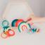 Teething toy specially designed for babies from day one . Shaped like a rainbow, this silicone teether gently massages baby's gums , helping to relieve discomfort caused by teething.