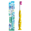 It features a clever color-coded marker on the bristles that guides the child on the exact amount of toothpaste needed, encouraging their independence. In addition, its suction cup base allows it to be stored vertically, keeping the brush head clean and the sink organized.