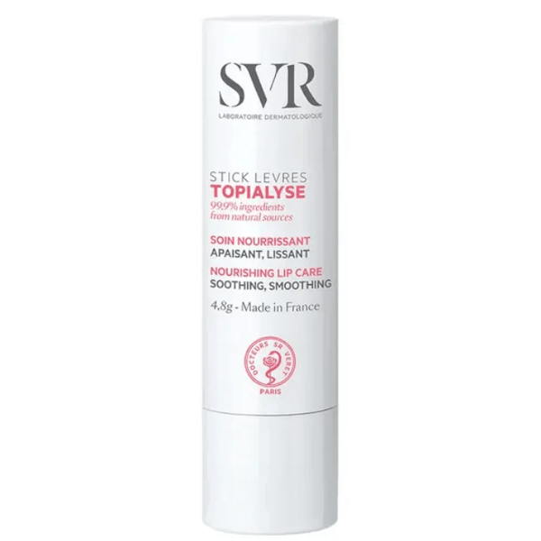 https://www.mifarma.eu/svr-topialyse-lip-stick-4-gr650783504588SVR Topialyse Lip Stick 4 gr<p><span style="font-weight: bold;">SVR Topialyse Lip Stick 4 gr</span></p><p>Balm in stick format for those<span style="font-weight: bold; "> very dry and chapped lips</span>, with 99.9% ingredients of natural origin.</p><p>Keeps lips nourished, smooth and comfortable throughout the day. </p> <p>It leaves an invisible, non-sticky film on the lips that protects against external aggressors. </p><p>Its formula is highly concentrated in vegetable oils and free of mineral oils. It contains only 12 ingredients.</p><p>84% vegetable oils rich in omegas 3, 6 and 9, and 5% shea butter to repair and regenerate lips.</p><p>In addition to antioxidants and vitamin And they are protectors.</p>https://assets.atida.com/transform/55eab269-f265-4747-9786-3457d0ddf12e/SVR-Topialyse-Stick-Labial-4-gr?io=transform:extend,width:250,height:2504.99outofstock6.24.1239659421488201.21Laboratorios SVRhttps://www.mifarma.eu/media/catalog/product/6/f/f/7/6ff7a118e5159719011d17f6d7636670a782382f_SVR_Topialyse_Stick_Labial_4_gr.png/Cosmetics and Beauty/Cosmetics and Beauty/Facial/Cosmetics and Beauty/Facial/Lips/Mifarma Days NO/NO MIFARMA DAYS2024-10-22T23:47:43+0000