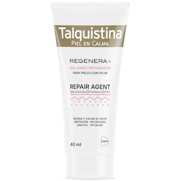 https://www.mifarma.eu/talquistina-regenerating-40-ml902566167328Talquistina Regenerating 40 ml<p><span style="font-weight: bold;">Talquistina Regenerating 40 ml</span></p><p> <span style="font-weight: bold;">Talquistina Regenera+</span> is a balm specifically designed for the regeneration of skin altered by various factors, such as itching, chafing, cracks, irritations and even tattoos.</p><p> <span style="font-weight: bold;">BENEFITS</span></p><p> - Its formula has been carefully crafted to offer a light texture that is easily absorbed, allowing the skin to regain its well-being without leaving a greasy residue.</p><p> Dermatologically tested, this product is suitable for all skin types, including those that tend to be more sensitive. This makes it an ideal choice for those seeking effective and safe skincare.</p><p> - It not only stands out for its regenerative capacity, but it also has clinical studies that support its effectiveness.</p><p> - It can be applied directly to the affected area, providing immediate relief and deep hydration.</p><p> - In addition, it is especially beneficial for those with <span style="font-weight: bold;">tattoos</span> , as it helps to keep the skin in optimal condition, promoting healing and preventing dryness.</p>https://assets.atida.com/transform/72f1297a-5f08-42b1-81a6-5fcb3a93511c/Talquistina-Regeneradora-40-ml?io=transform:extend,width:250,height:25010.99outofstock12.249.0826436280992101.25Talquistinahttps://www.mifarma.eu/media/catalog/product/5/a/d/4/5ad4968688b031c6102971740b79f569642e60b1_Talquistina_Regeneradora_40_ml.png/Cosmetics and Beauty/Cosmetics and Beauty/Body/Cosmetics and Beauty/Body/Altered Skin/First Aid Kit2025-11-28T01:14:02+0000