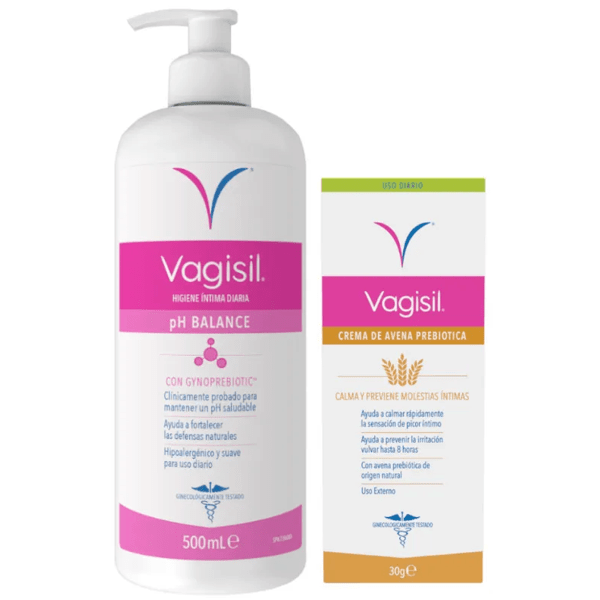 Vagisil Prebiotic Oatmeal Cream 30 gr: Aqua, Cetearyl Alcohol, Ceteareth-20, Caprylic/Capric Triglyceride, Butyrospermum Parkii (Shea) Butter, Colloidal Oatmeal, Stearic Acid, Dimethicone, Glyceryl Distearate, Glyceryl Stearate, Phenoxyethanol, Caprylyl Glycol, Acrylates/C10-30 Alkyl Acrylate Crosspolymer,Glycerin, Disodium EDTA, Sodium Hydroxide, Lactic Acid.(RD-005259) Vagisil Intimate Hygiene pH Balance 500 ml: Aqua, sodium laureth sulfate, cocamidopropyl betaine, lauryl glucoside, glycerin, aloe barbadensis leaf extract, chamomilla recutita flower extract, maleleuca alternifolia leaf oil, lactitol, tocopheryl acetate, calendula officinalis flower extract, propylene glycol, PEG-120 methyl glucose dioleate, sodium benzoate, sodium chloride, salicylic acid, citric acid, disodium EDTA, polyquatemium-10, lactic acid, parfum.How to use