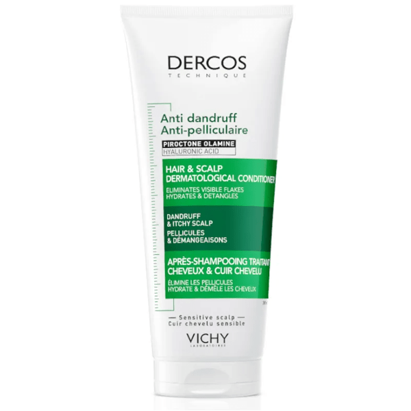 https://www.mifarma.eu/vichy-dercos-anti-dandruff-conditioner-for-sensitive-scalp-200-ml481067683083Vichy Dercos Anti-Dandruff Conditioner for Sensitive Scalp 200 ml<p><span style="font-weight: bold;">Vichy Dercos Anti-Dandruff Conditioner for Sensitive Scalp 200 ml</span></p><p> This <span style="font-weight: bold;">anti-dandruff conditioner</span> is ideal for fighting dandruff and scalp <span style="font-weight: bold;">itchiness</span> .</p><p> <span style="font-weight: bold;">BENEFITS</span></p><p> - This innovative formula, which includes Piroctone Olamine and Hyaluronic Acid, is clinically proven to eliminate up to 77% of visible dandruff* and reduce itching by an impressive 92%* after regular use.</p><p> - In addition, it provides intense hydration that lasts up to 72 hours**, leaving hair noticeably softer and with 96% less hair breakage**.</p><p> - Piroctone Olamine is an active ingredient known for its effectiveness in treating dandruff, as it acts against the fungi responsible for its appearance.</p><p> - On the other hand, Hyaluronic Acid helps retain moisture, resulting in a healthier scalp and more manageable hair.</p><p> - This conditioner is especially suitable for those with <span style="font-weight: bold;">a sensitive scalp</span> or <span style="font-weight: bold;">dyed hair</span> .</p><p> *Clinical study in 33 subjects – 4 weeks.</p><p> **Instrumental test.</p>https://assets.atida.com/transform/b09587b9-fefd-43e6-9b54-d876772651e0/Vichy-Dercos-Acondicionador-AnticaspaCuero-Cabelludo-Sensible-200-ml?io=transform:extend,width:250,height:25016.99outofstock27.214.041321314053810.21Vichyhttps://www.mifarma.eu/media/catalog/product/a/9/8/5/a98575b26c011fa9ad24b8b4d81df596bb18f652_Vichy_Dercos_Acondicionador_AnticaspaCuero_Cabelludo_Sensible_200_ml.png/Health and Hygiene/Hair Care/Conditioners/Health and Hygiene/Health and Hygiene/Hair Care/20% off Vichy2026-02-21T00:57:33+0000