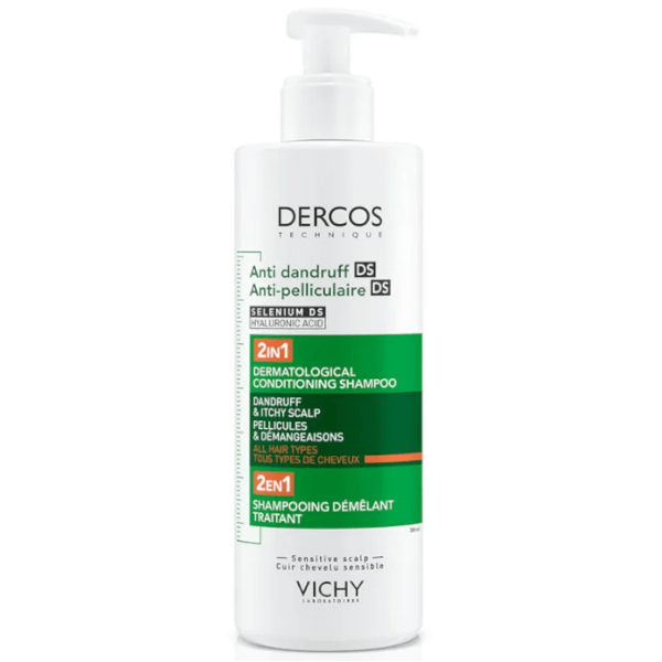 https://www.mifarma.eu/vichy-dercos-anti-dandruff-shampoo-2-in-1-400-ml355798641690Vichy Dercos 2-in-1 Anti-Dandruff Shampoo and Conditioner 390ml<p></p><p><span style="font-weight: bold;">Vichy Dercos 2-in-1 Anti-Dandruff Shampoo and Conditioner 390ml</span></p> <span style="font-weight: bold;">This Conditioning Shampoo is an effective treatment developed to combat dandruff and maintain a healthy scalp</span> .<p></p><p> Its innovative formula, <span style="font-weight: bold;">enriched with hyaluronic acid, eliminates visible dandruff from the first use and provides lasting hydration for up to 72 hours</span> . It combines the cleansing properties of a traditional shampoo with the benefits of a conditioner, making daily hair care easier.</p><p> In addition, its <span style="font-weight: bold;">6-week anti-relapse action</span> prevents the future appearance of dandruff, and rebalances the scalp microbiome, reducing the presence of the Malassezia fungus, which causes dandruff.</p><p> This conditioning shampoo is suitable for people with sensitive scalps.</p>https://assets.atida.com/transform/85861f78-01c9-4bd0-9ec9-ad073bb2e2cc/Vichy-Dercos-Champu-Acondicionador-Anticaspa-2-en-1-390-ml?io=transform:extend,width:250,height:25019.99instock2816.520660157025298.01Vichyhttps://www.mifarma.eu/media/catalog/product/f/6/c/2/f6c2d615097effcc6f0658da4f9d9e268d4ccf50_Vichy_Dercos_Champu_Acondicionador_Anticaspa_2_en_1_390_ml.png/Health and Hygiene/Hair Care/Hair Shampoo/Health and Hygiene/Health and Hygiene/Hair Care/Atida Cash 5%2025-01-30T00:42:20+0000