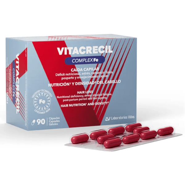 https://www.mifarma.eu/vitacrecil-complex-fe-hair-loss-90-capsules497375026955Vitacrecil Complex Fe Hair Loss 90 Capsules<p><span style="font-weight: bold;">Vitacrecil Complex Fe Hair Loss 90 Capsules</span></p><p> <span style="font-weight: bold;">Vitacrecil Complex Fe</span> is a dietary supplement specifically formulated to <span style="font-weight: bold;">address hair loss,</span> a problem that can be aggravated by various factors, such as restrictive diets, stress, fatigue in athletes, postpartum, or perimenopause.</p><p> Its innovative advanced trichogenic formula contains <span style="font-weight: bold;">Tricofer</span> , which is <span style="font-weight: bold;">highly absorbable liposomal iron</span> , ensuring that the body can make the most of this essential mineral.</p><p> In addition, Vitacrecil Complex Fe includes <span style="font-weight: bold;">biotin</span> , a <span style="font-weight: bold;">B vitamin</span> that plays a fundamental role in hair health, helping to <span style="font-weight: bold;">strengthen it and improve its overall appearance.</span></p><p> <span style="font-weight: bold;">Biotin,</span> also known as vitamin H, is recognized for its ability to promote <span style="font-weight: bold;">hair growth and prevent hair loss.</span></p><p> <span style="font-weight: bold;">Cystine,</span> an amino acid found in hair proteins, is also present in this formula. Cystine is essential for the <span style="font-weight: bold;">production of keratin</span> , the main component of hair, contributing to <span style="font-weight: bold;">its density and strength</span> .</p><p> Vitacrecil Complex Fe is presented as an effective and safe option for those looking to improve the health of their hair and combat hair loss, especially during times of hormonal changes or nutritional deficiencies.</p>https://assets.atida.com/transform/ea1845e2-1368-4de0-931d-d7f692ff4fd0/Vitacrecil-Complex-Fe-Caida-Capilar-90-Capsulas?io=transform:extend,width:250,height:25031.99instock3529.08181718181893.01Vitacrecilhttps://www.mifarma.eu/media/catalog/product/5/6/2/7/5627b91f927ed73ce2369dc1eb8204d016ae7086_Vitacrecil_Complex_Fe_Caida_Capilar_90_Capsulas.png/Health and Hygiene/Hair Care/Anti-Hair Loss/Health and Hygiene/Hair Care/Treatment/Health and Hygiene/Health and Hygiene/Hair Care/Vitamins and Supplements/Vitamins and Supplements/Minerals/Vitamins and Supplements/Supplements/Vitamins and Supplements/Vitamins (A-K)/Mifarma Days NO2025-10-01T14:07:45+0000