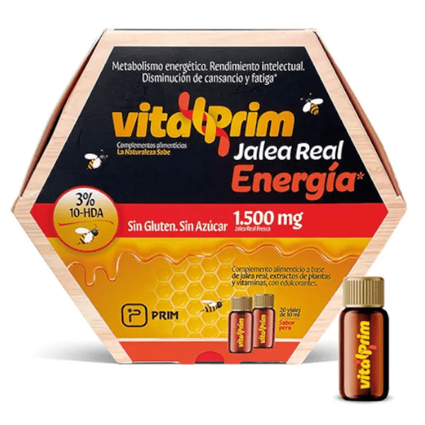 https://www.mifarma.eu/vitalprim-royal-jelly-energy-1500mg-20-vials237632375776Vitalprim Royal Jelly Energy 1500mg 20 Vials<p data-start="141" data-end="408"><strong data-start="141" data-end="191"></strong></p><p data-start="141" data-end="408"> <span style="font-weight: 700;">Vitalprim Royal Jelly Energy 1500mg 20 Vials</span></p><p data-start="141" data-end="408"> <strong data-start="141" data-end="191">Vitalprim Royal Jelly Energy 1500 mg 20 Vials</strong> is a <strong data-start="198" data-end="293">pear-flavored food supplement designed to provide an effective and natural energy boost</strong> . Each dose contains <strong data-start="315" data-end="341">1,500 mg of Royal Jelly</strong> , an ingredient known for its <strong data-start="375" data-end="405">revitalizing properties</strong> .</p><p data-start="410" data-end="691"> The <strong data-start="413" data-end="448">vitamin B5 (pantothenic acid)</strong> present in the formula <strong data-start="472" data-end="519">contributes to normal energy metabolism</strong> and helps <strong data-start="530" data-end="566">reduce fatigue and tiredness</strong> , promoting <strong data-start="585" data-end="633">better conversion of food into energy</strong> to maintain <strong data-start="651" data-end="688">optimal performance throughout the day</strong> .</p><p data-start="693" data-end="1106"> In addition, Vitalprim Energy is enriched with a <strong data-start="740" data-end="776">blend of natural ingredients</strong> , including <strong data-start="789" data-end="800">ginseng</strong> (an adaptogen), <strong data-start="815" data-end="823">maca</strong> (which improves physical and mental performance), <strong data-start="866" data-end="877">acerola</strong> (rich in vitamin C), <strong data-start="900" data-end="911">guarana</strong> (a natural stimulant), and <strong data-start="936" data-end="948">ginger</strong> (which offers digestive and anti-inflammatory benefits). This combination helps <strong data-start="1019" data-end="1057">strengthen the immune system</strong> and promotes an <strong data-start="1072" data-end="1103">overall sense of well-being</strong> .</p><p data-start="1108" data-end="1387" data-is-last-node="" data-is-only-node=""> The product is <strong data-start="1123" data-end="1151">gluten-free and sugar-free</strong> , making it <strong data-start="1168" data-end="1219">suitable for people with dietary restrictions</strong> . <strong data-start="1221" data-end="1242">Vitalprim Energy</strong> offers a <strong data-start="1254" data-end="1335">natural solution to combat fatigue and boost daily performance</strong> , supporting an <strong data-start="1349" data-end="1386">active and healthy lifestyle</strong> .</p>https://assets.atida.com/transform/2bb111bc-c5aa-4159-b8dd-f30fa683e7ae/Vitalprim-Jalea-Real-Energia-1500Mg-20Viales?io=transform:extend,width:250,height:25016.99instock19.9515.445453545455152.96VitalPrimhttps://www.mifarma.eu/media/catalog/product/f/6/7/8/f678e7ceeae1b5f5b8e544df668ba9ece0695d2b_Vitalprim_Jalea_Real_Energia_1500Mg_20Viales.png/Herbal Remedies/Herbal Remedies/Royal Jelly/Vitamins and Supplements/Vitamins and Supplements/Multivitamins/Vitamins and Supplements/Supplements2026-02-10T00:50:14+0000