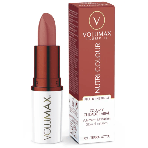 Volumax Plump It Nutri-Colour Terracotta 03 is a needle-free, tinted lip filler designed to transform the appearance of the lips, providing volume, hydration, and a radiant finish . Its advanced formula combines five intelligent active ingredients , including biomimetic Tripeptide-1 and cross-linked hyaluronic acid , which work synergistically to deliver remarkable results .