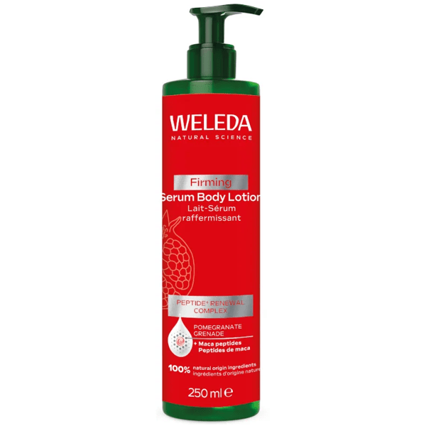 https://www.mifarma.eu/weleda-pomegranate-body-milk-serum-250-ml501229743359Weleda Pomegranate Body Milk Serum 250 ml<p><span style="font-weight: bold;">Weleda Pomegranate Body Milk Serum 250 ml</span></p><p> <span style="font-weight: bold;">Visibly younger, firmer and more radiant skin</span> with this body milk based on <span style="font-weight: bold;">Maca and Pomegranate peptides</span> !</p><p> This innovative product harnesses <span style="font-weight: bold;">the power of natural antioxidants</span> to give you results.</p><p> Thanks to an advanced formula, this <span style="font-weight: bold;">serum-like body milk</span> improves your skin's texture, <span style="font-weight: bold;">increasing its firmness and softness</span> with each application.</p><p> Through clinical studies, they have confirmed that after just 4 weeks of continuous, twice-daily use, all participants experienced significant <span style="font-weight: bold;">cellular revitalization</span> , revealing <span style="font-weight: bold;">tighter, more vibrant skin.</span></p><p> This body lotion not only <span style="font-weight: bold;">combats the visible signs of aging,</span> but also <span style="font-weight: bold;">protects your skin's natural balance,</span> being friendly to your microbiome.</p><p> Get ready to transform your skincare with hydration that redefines the boundaries of natural beauty.</p>https://assets.atida.com/transform/04ac3d29-5ea0-4054-abb2-8c55e5118e09/Weleda-Serum-Leche-Corporal-de-Granada-250-ml?io=transform:extend,width:250,height:25011.99instock14.959.9090899090909202.96Weledahttps://www.mifarma.eu/media/catalog/product/7/f/f/3/7ff3314e066f769a1e57a34a1e1029a8895e3b96_Weleda_Serum_Leche_Corporal_de_Granada_250_ml.png/Health and Hygiene/Health and Hygiene/Body Care/Health and Hygiene/Body Care/Moisturization and Exfoliation/Mifarma Days NO2025-09-10T00:03:38+0000