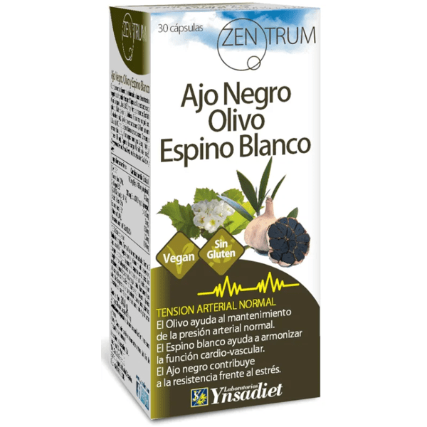 https://www.mifarma.eu/ynsadiet-zentrum-black-garlic-hawthorn-olive-30-capsules418643422718Ynsadiet Zentrum Black Garlic, Hawthorn and Olive 30 Capsules<p><span style="font-weight: 700;">Ynsadiet Zentrum Black Garlic, Hawthorn and Olive 30 Capsules</span></p><p> Dietary supplement formulated to <span style="font-weight: bold;">support cardiovascular health and help regulate blood pressure.</span></p><p> This supplement <span style="font-weight: bold;">combines three key ingredients</span> from traditional herbal medicine to <span style="font-weight: bold;">improve circulation and maintain healthy blood pressure levels.</span></p><p> <span style="font-weight: bold;">Being black garlic (fermented),</span> it avoids the strong smell and taste of common garlic, in addition to enhancing its antioxidant properties.</p><p> <span style="font-weight: bold;">BENEFITS:</span></p><p> <span style="font-weight: bold;">- Blood pressure regulation:</span> Olive is known to help maintain blood pressure at normal levels.</p><p> <span style="font-weight: bold;">- Heart health:</span> Hawthorn helps to normalize heart rhythm and promotes relaxation of the heart muscle.</p><p> <span style="font-weight: bold;">- Antioxidant action:</span> Black Garlic helps protect arteries against oxidative damage and promotes the reduction of "bad" cholesterol (LDL).</p><p> <span style="font-weight: bold;">- Circulation:</span> Improves overall blood flow.</p>https://assets.atida.com/transform/455851f5-bffd-4dca-a0d1-fe46c84367f4/Ynsadiet-Zentrum-Ajo-Negro-Espino-Blanco-y-Olivo-30-Capsulas?io=transform:extend,width:250,height:2508.99instock15.228.1727262727273416.23Ynsadiethttps://www.mifarma.eu/media/catalog/product/e/3/e/1/e3e12cafd5dcaae65b046ec3e3b3a101dc81eb7e_Ynsadiet_Zentrum_Ajo_Negro_Espino_Blanco_y_Olivo_30_Capsulas.png/Master catalog/Master catalog/Vitamins and Supplements/Supplements/Cardiovascular/Master catalog/Vitamins and Supplements/Master catalog/Vitamins and Supplements/Supplements/Master catalog/Atida Cash 5%/Master catalog/Mifarma Days NO2024-10-22T23:47:08+0000